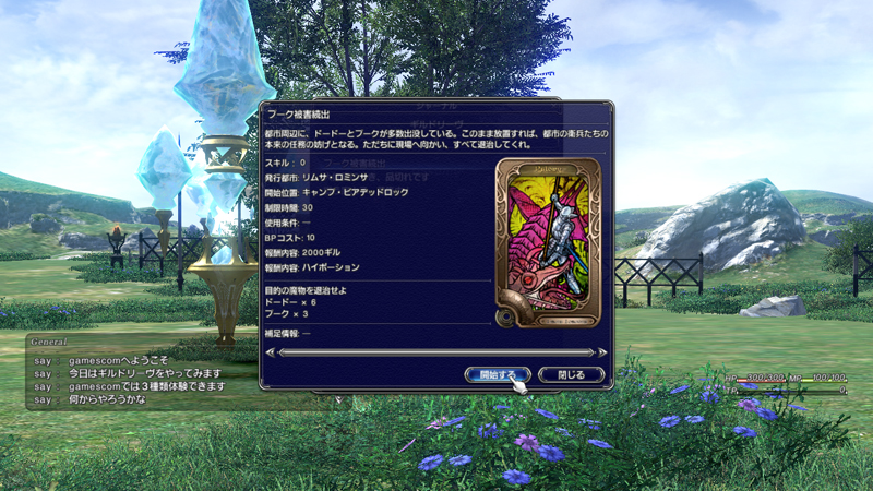 ■「ギルドリーブ」を発行してもらい「リーブクエスト」を受ける。なんとランダム配布らしい。くじですか? なんかいい「ギルドリーブ」は引き当てる確率が低い〜とか? 同じものが出て来た場合に「ギルドリーブの受け直し」ができるらしい。そして「ギルドリーブ」に記入されている「エーテルライトのあるエリア」に移動。
